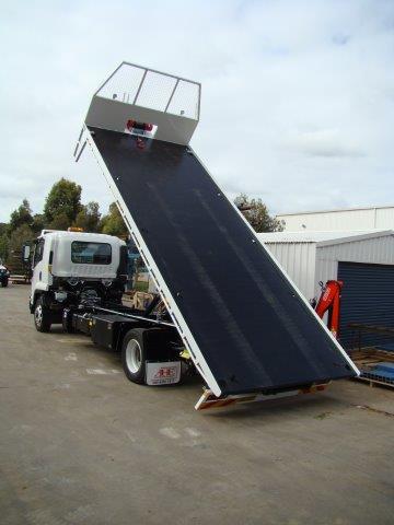 The tray is also able to be fitted with a hydraulic winch that, when the tray slides back to the ground, enables all types of machinery to be loaded into the back of the body. With a loading angle of approximately 20 degrees, the Tipper Slider is able to carry rollers, excavators, bobcats, scissor lifts and most types of equipment. The tray is able to be loaded from ground level, eliminating the need for ramps, making it a safer loading alternative.